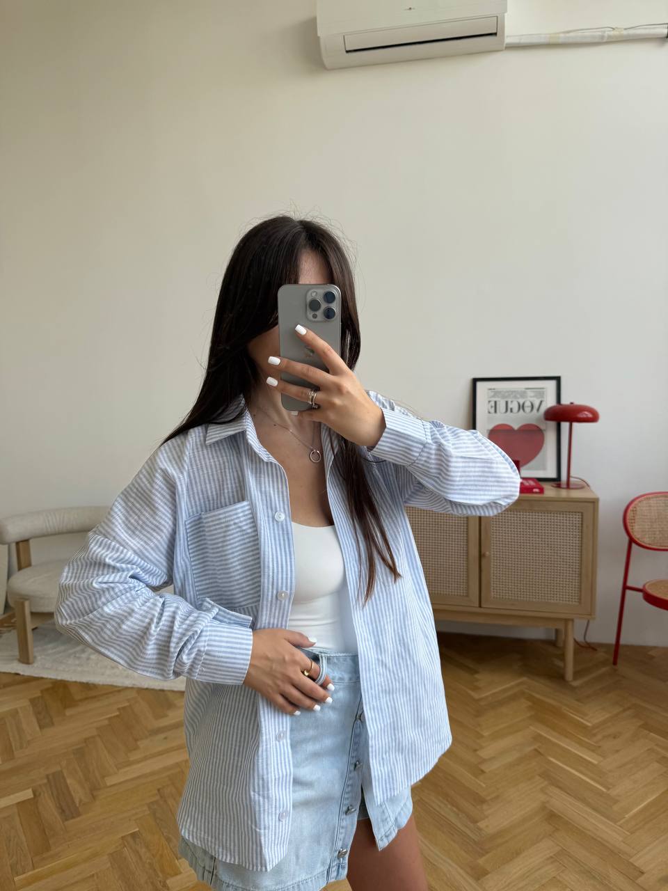 Льняная рубашка в полоску голубой