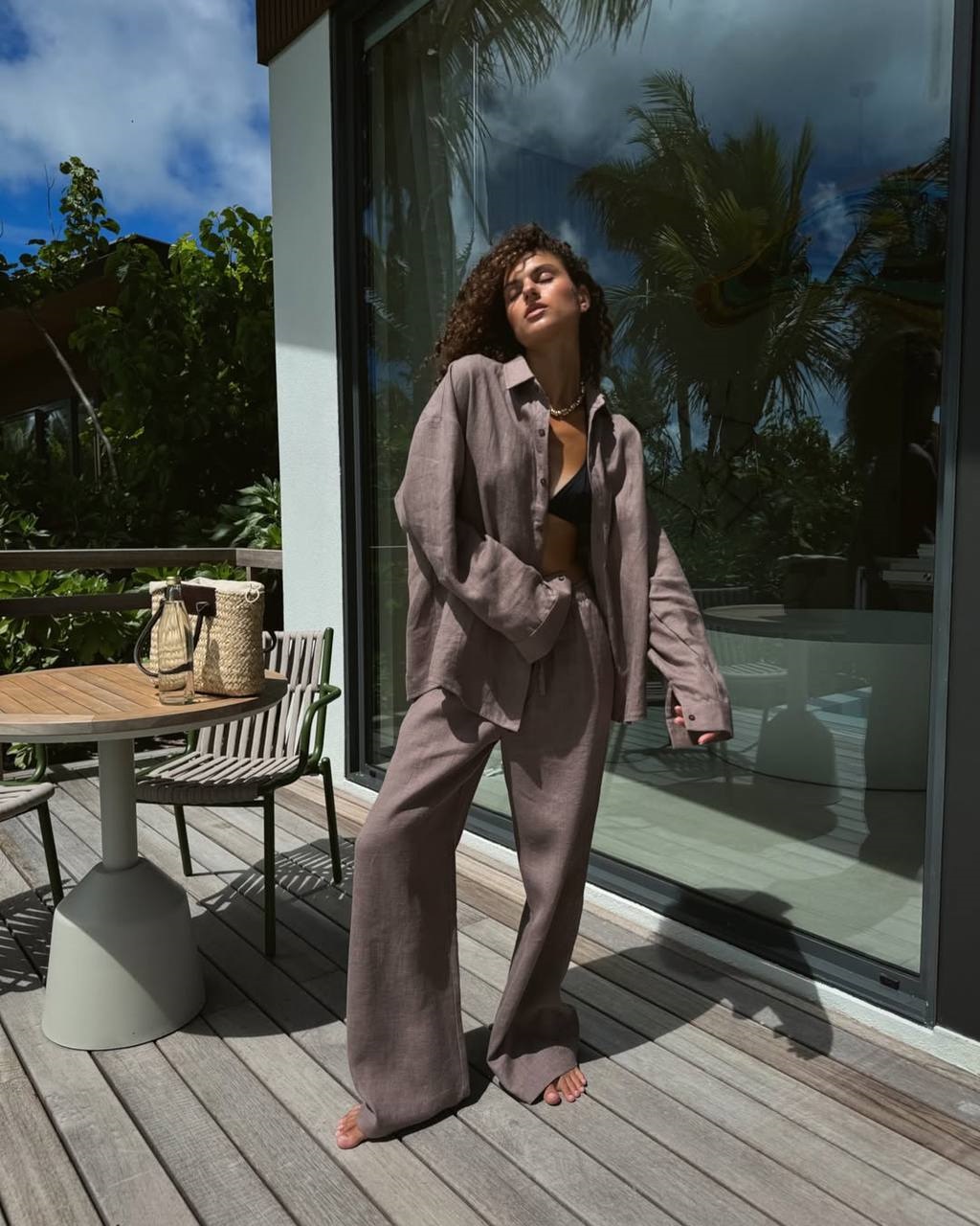 Головна » Магазин » Одяг » Жіночі костюми » Льняной брючный костюм (брюки свободного кроя+рубашка с длинным рукавом) мокко