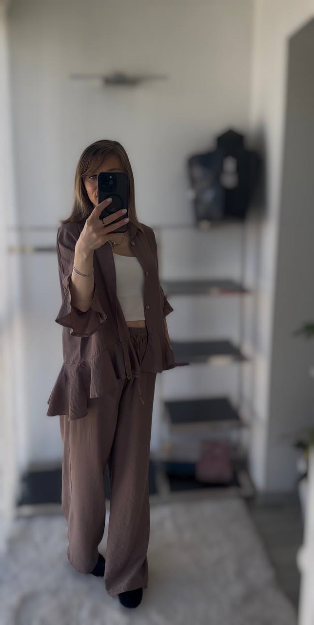 Льняный костюм в самом желанном оттенке этого года