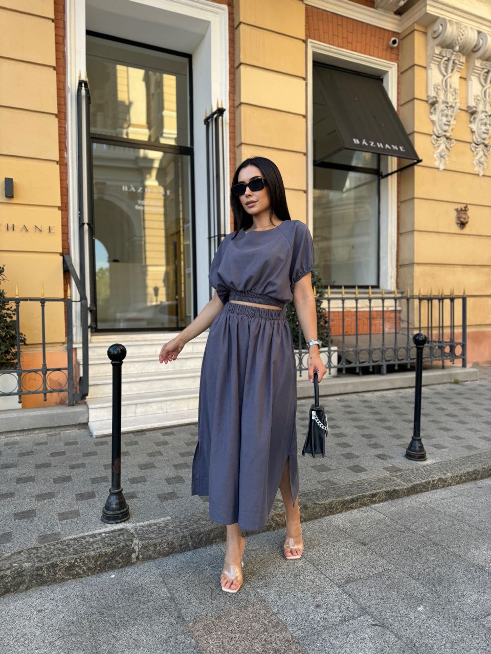 Будьте першим, хто залишив відгук “Льняной Костюм двойка юбка миди с разрезом + кофта серый”“