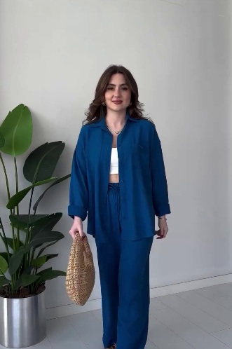 Будьте першим, хто залишив відгук “Льняной костюм (рубашка оверсайз+брюки палаццо пояс на резинке) синий”“