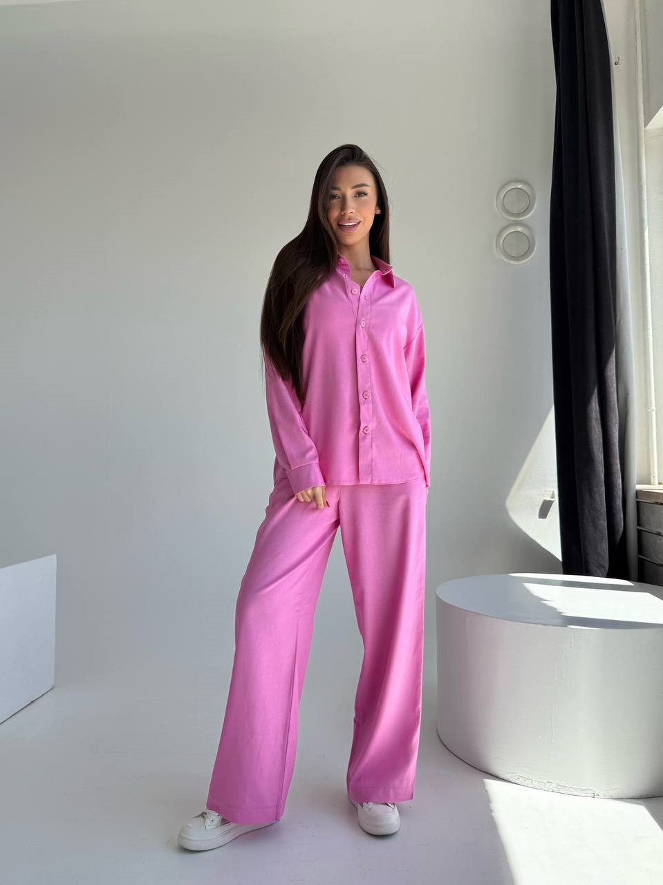 Головна » Магазин » Одяг » Жіночі костюми » Льняной костюм (рубашка+брюки свободного кроя) розовый