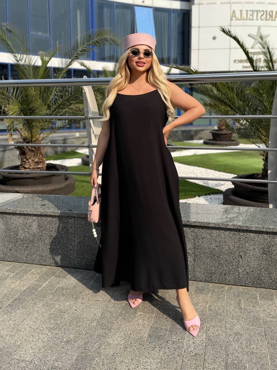 Льняной сарафан на бретельках длиной макси черный