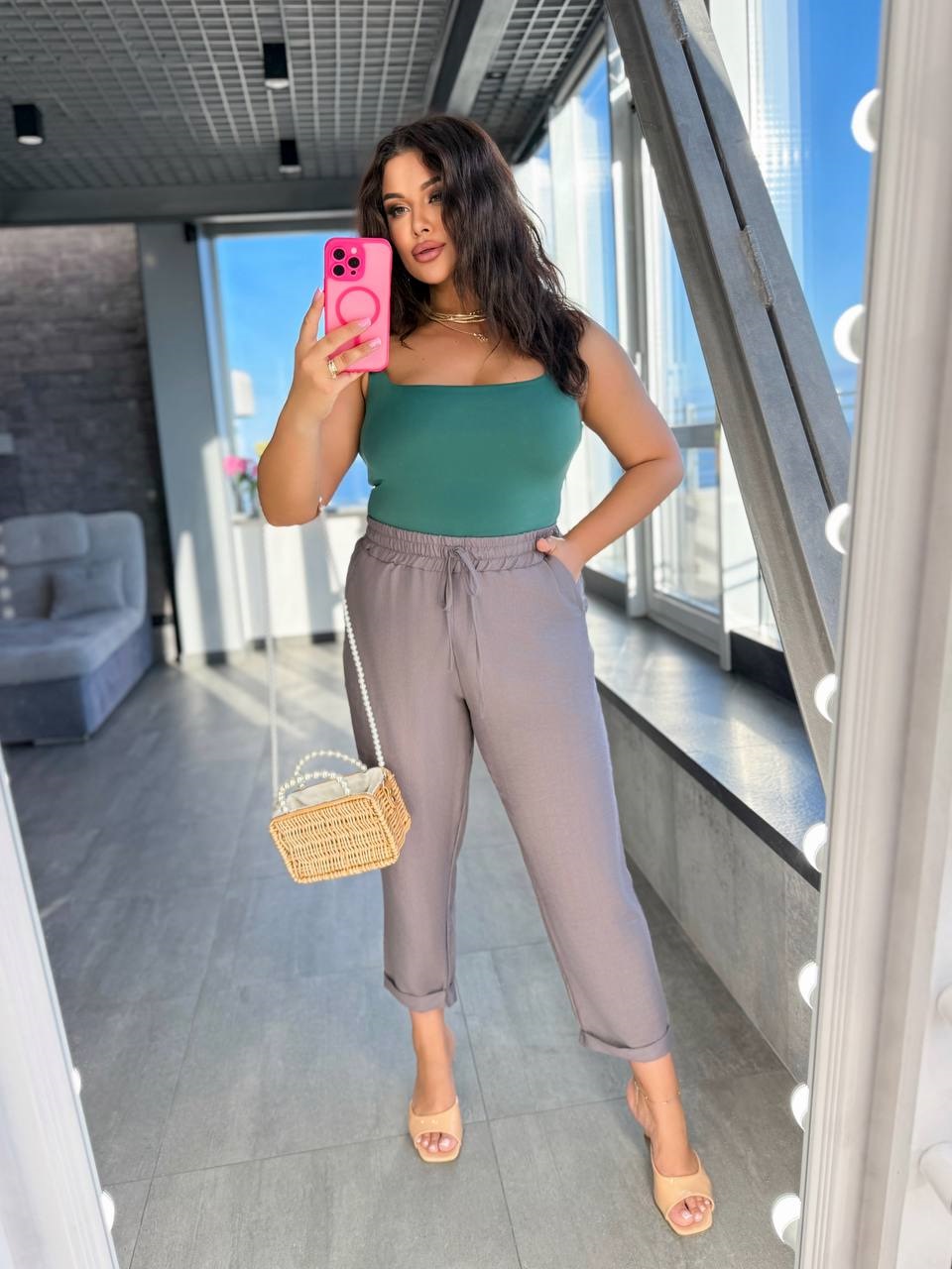 Головна » Магазин » Одяг » Жіночі штани джинси штани гетри » Льняные брюки-бананы с карманами талия на резинке мокко