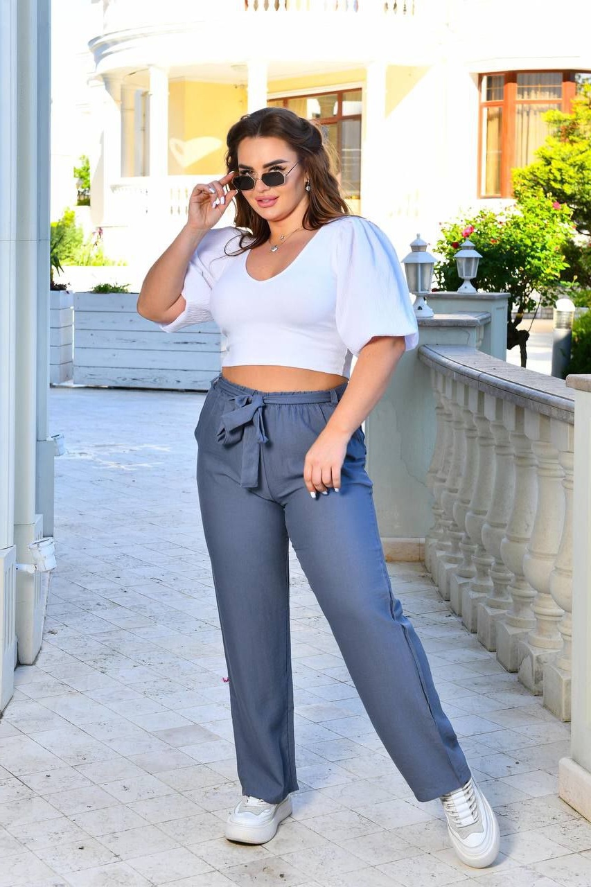 Будьте першим, хто залишив відгук “Льняные брюки прямого кроя с карманами+талия на резинке+пояс графит”“