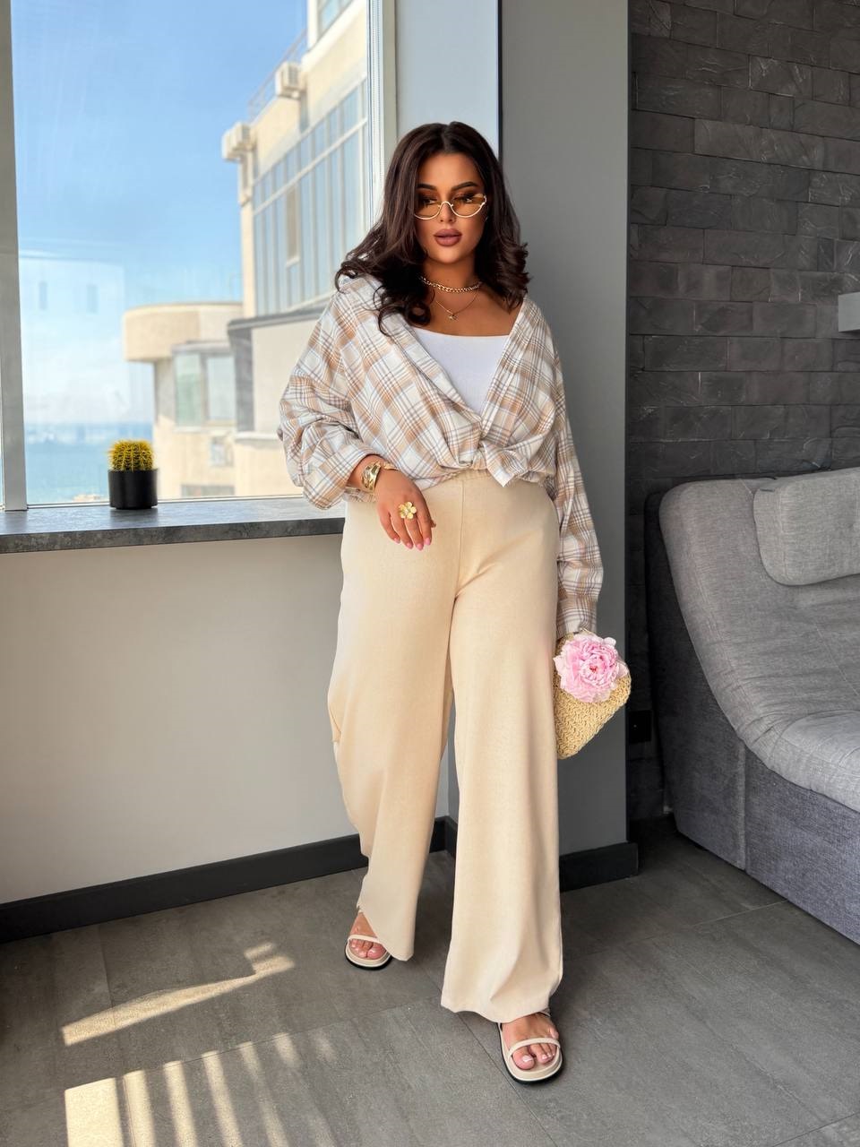 Головна » Магазин » Одяг » Жіночі штани джинси штани гетри » Льняные брюки свободного кроя+талия на резинке бежевый