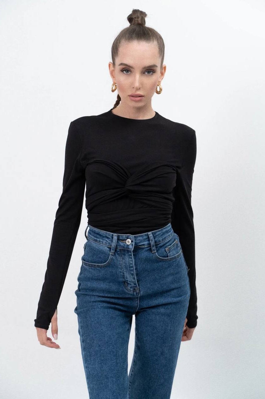 Лонгслив с акцентным бра, который можно моделировать по твоему желанию.