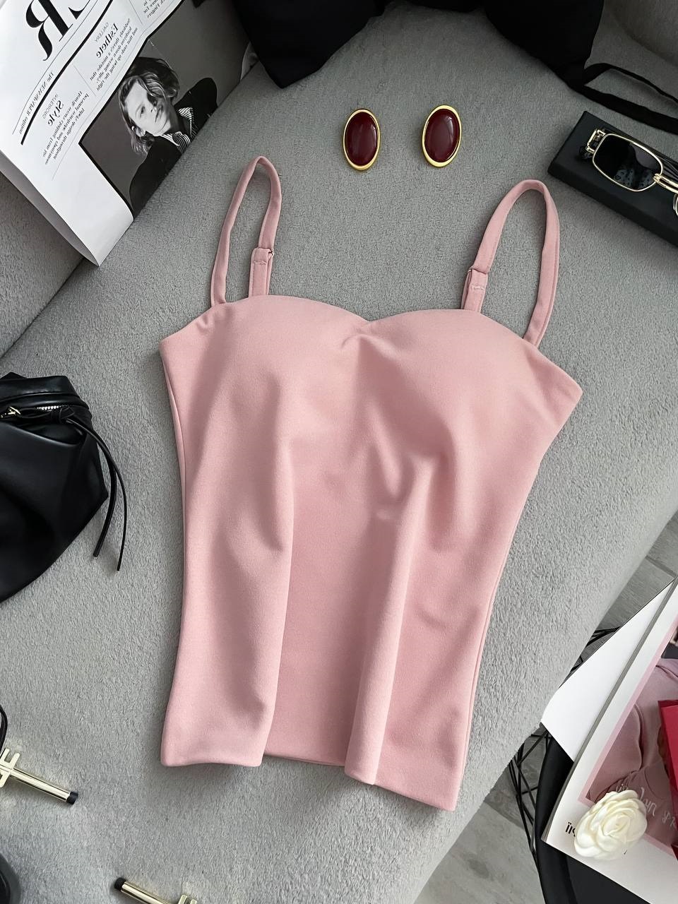 Майка пуш-ап на бретелях пудра