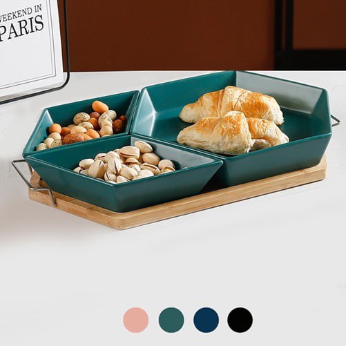 Менажницы на подставке Sweet. Размер: 38х21,5см. Комплектация набора: 3 монастыря и 1 подставка. Материал: дерево (подставка), керамика. Окраска ассорти. Предназначены для фруктовых и овощных вырезок, мясных и колбасных изделий, десертов, соусов. Прекрасно подойдут для кафе, ресторанов и дома. Упаковка: цветная коробка.