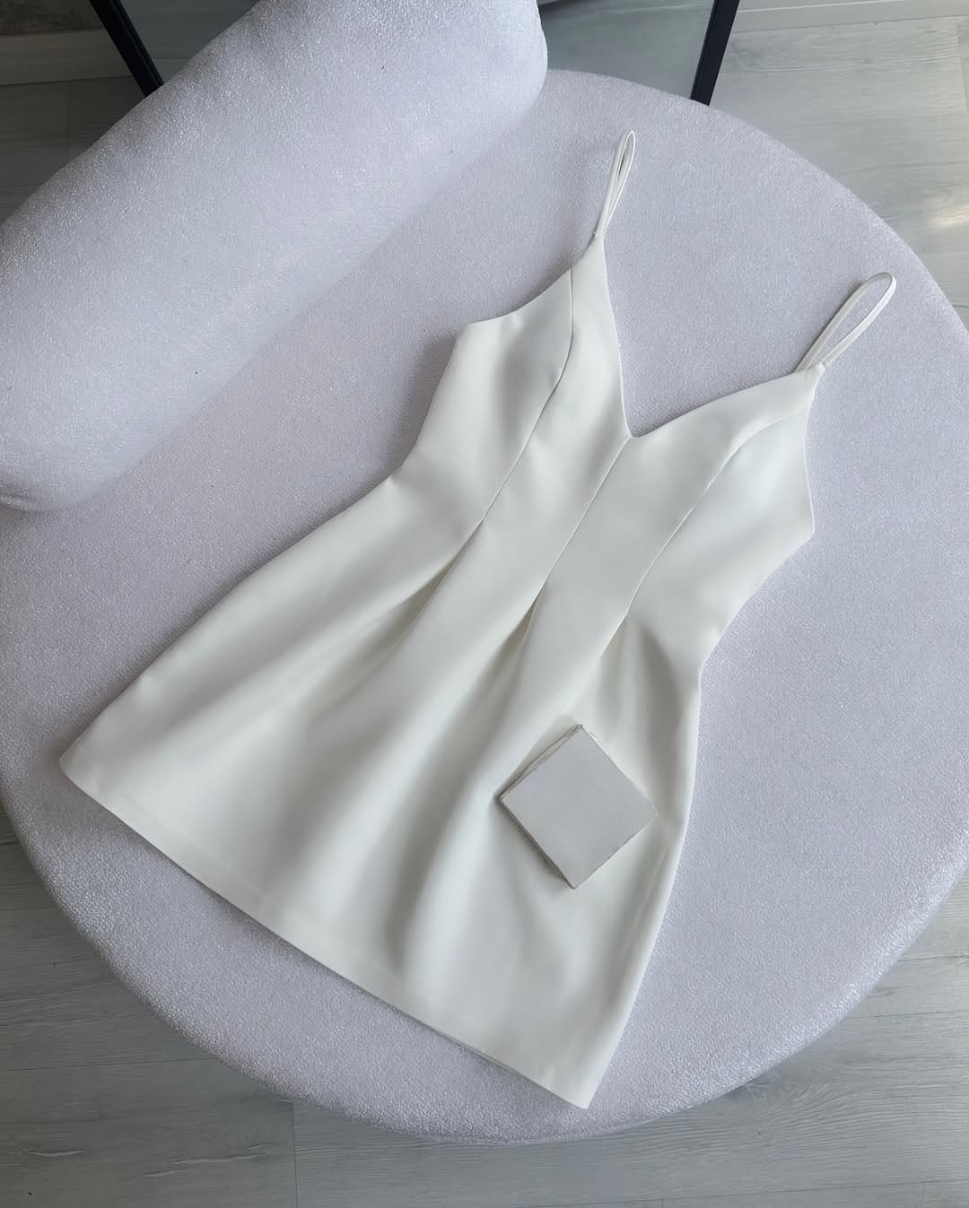 Мини платье на тонких бретелях (костюмка) белый