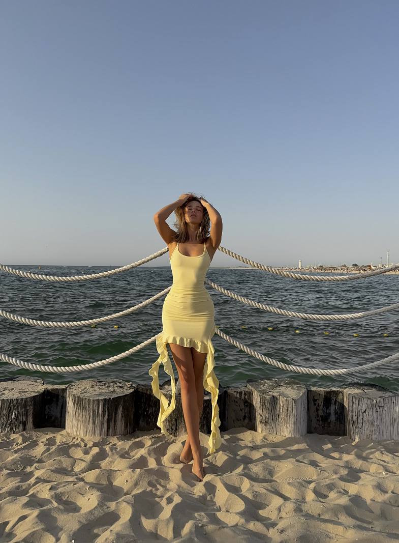 Мини платье на тонких бретелях (микродайвинг) лимонный