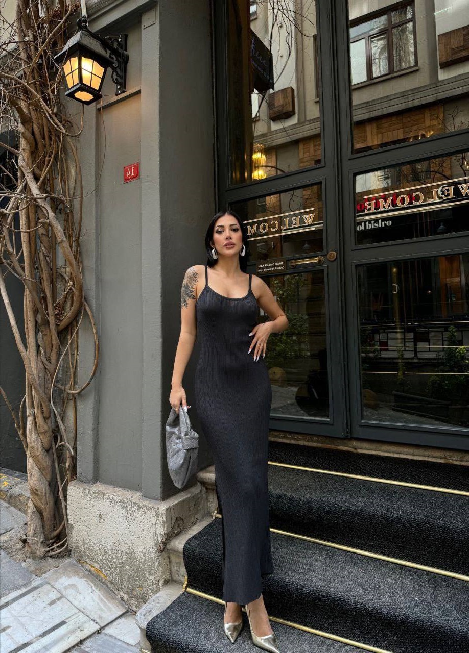 Моделирующее фигуру Платье из трикотажа на бретелях+с боковым разрезом черный