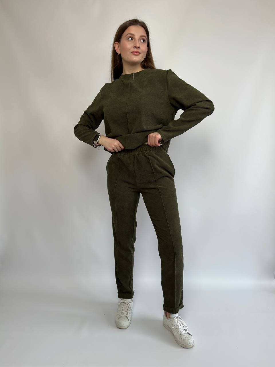 Модный стильный костюм кофта+штаны микровельвет хаки