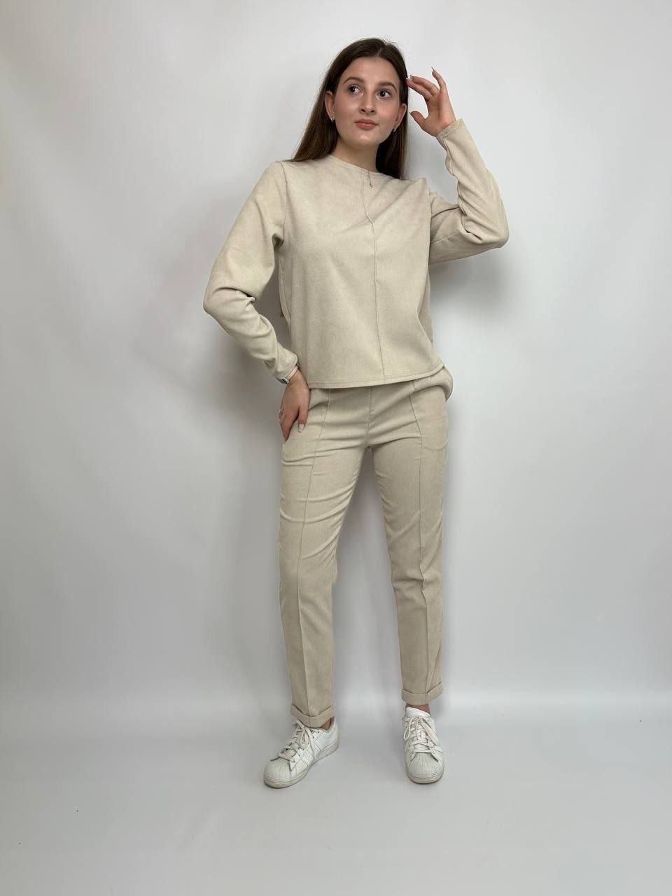 Модный стильный костюм кофта+штаны микровельвет бежевый