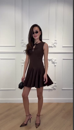 Головна » Магазин » Одяг » Сукня туніка сарафані » Молодежное платье длиной мини приталенного силуэта с расклешенной юбкой шоколад