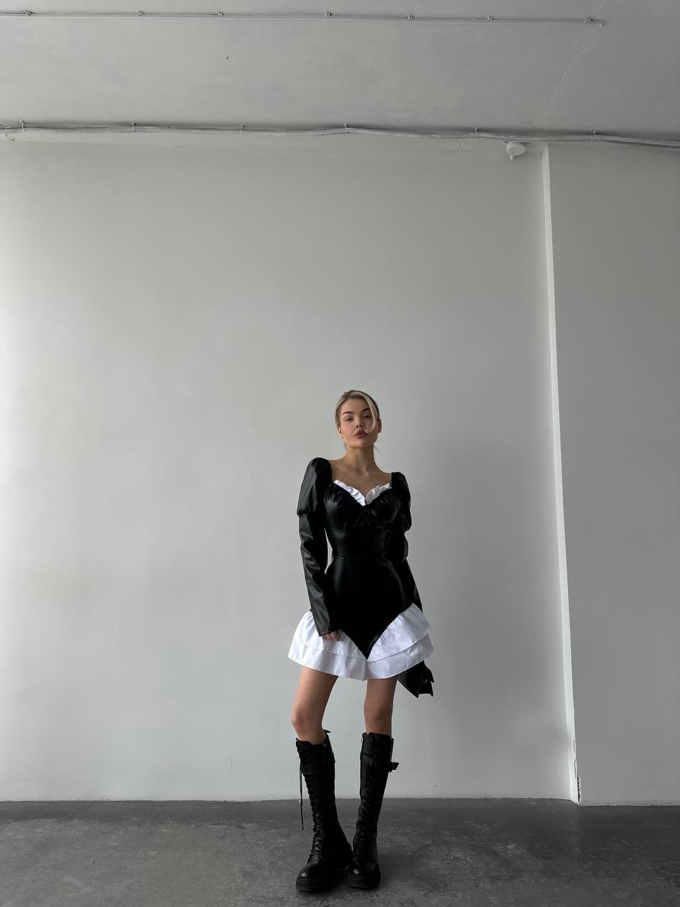 Будьте першим, хто залишив відгук “Молодежное платье с необычным сочетанием эко-кожи и коттона черный”“
