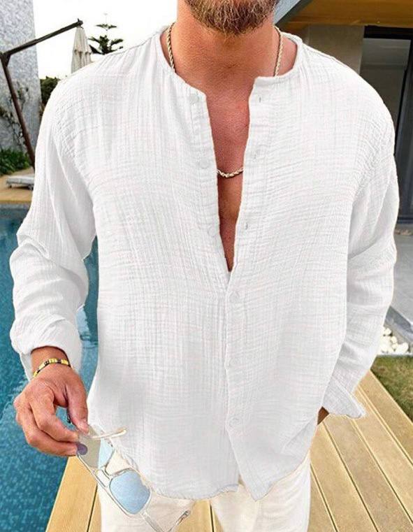 Эта мужская рубашка имеет легкую дышащую ткань, которая идеально подходит для летней погоды. Дизайн рубашки классический, с акцентом на минимализме, что делает ее отличным выбором как для офиса, так и для неформальных мер.