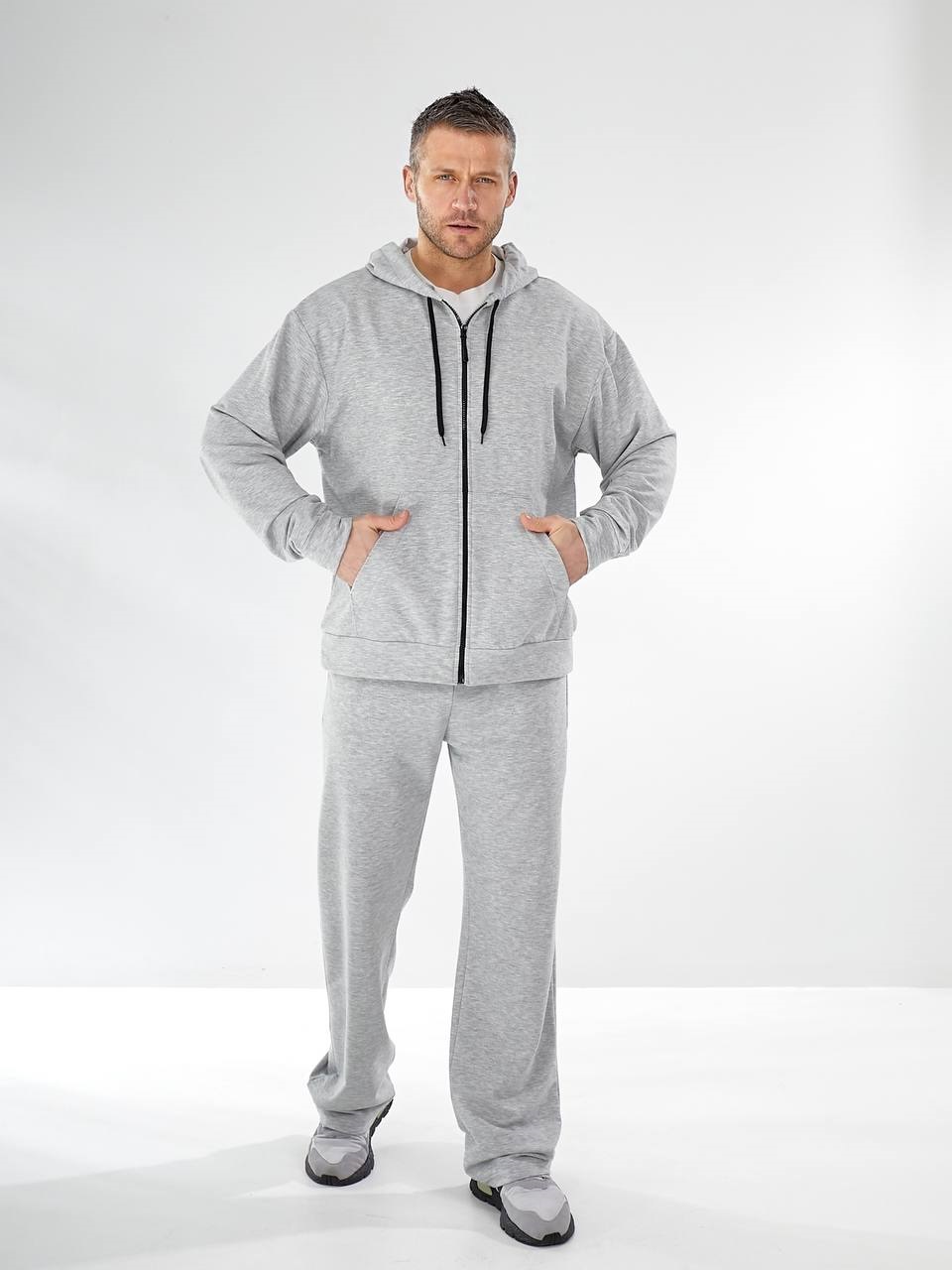 Мужской костюм из двухнитки (кофта на молнии с капюшоном+брюки с карманами) серый