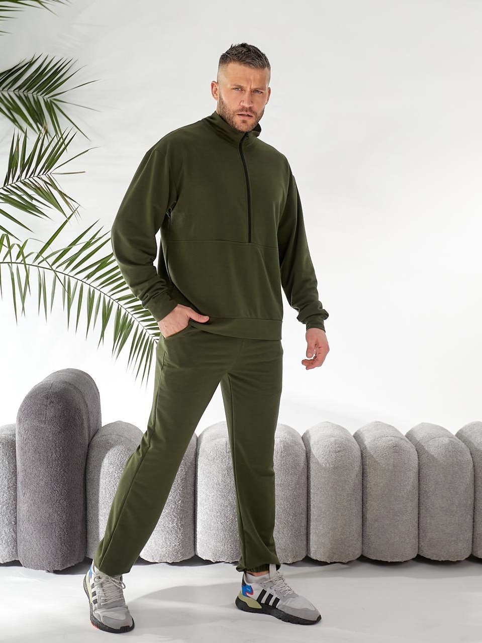 Мужской костюм из двухнитки (кофта воротник на молнии+брюки с карманами+низ на резинке) хаки