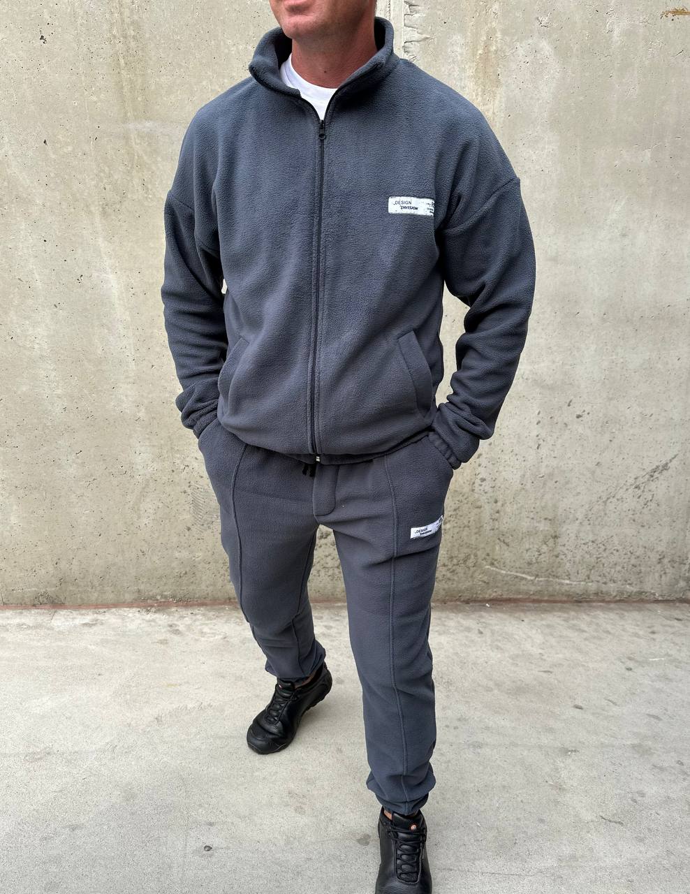 Костюм изготовлен из мягкой, теплой и приятной на ощупь ткани, в нем будет очень комфортно в осенне-зимний период. Благодаря резинкам снизу на штанах, снизу на кофте и на рукавах, костюм хорошо защищает от ветра. Пояс на штанах регулируется шнурком.