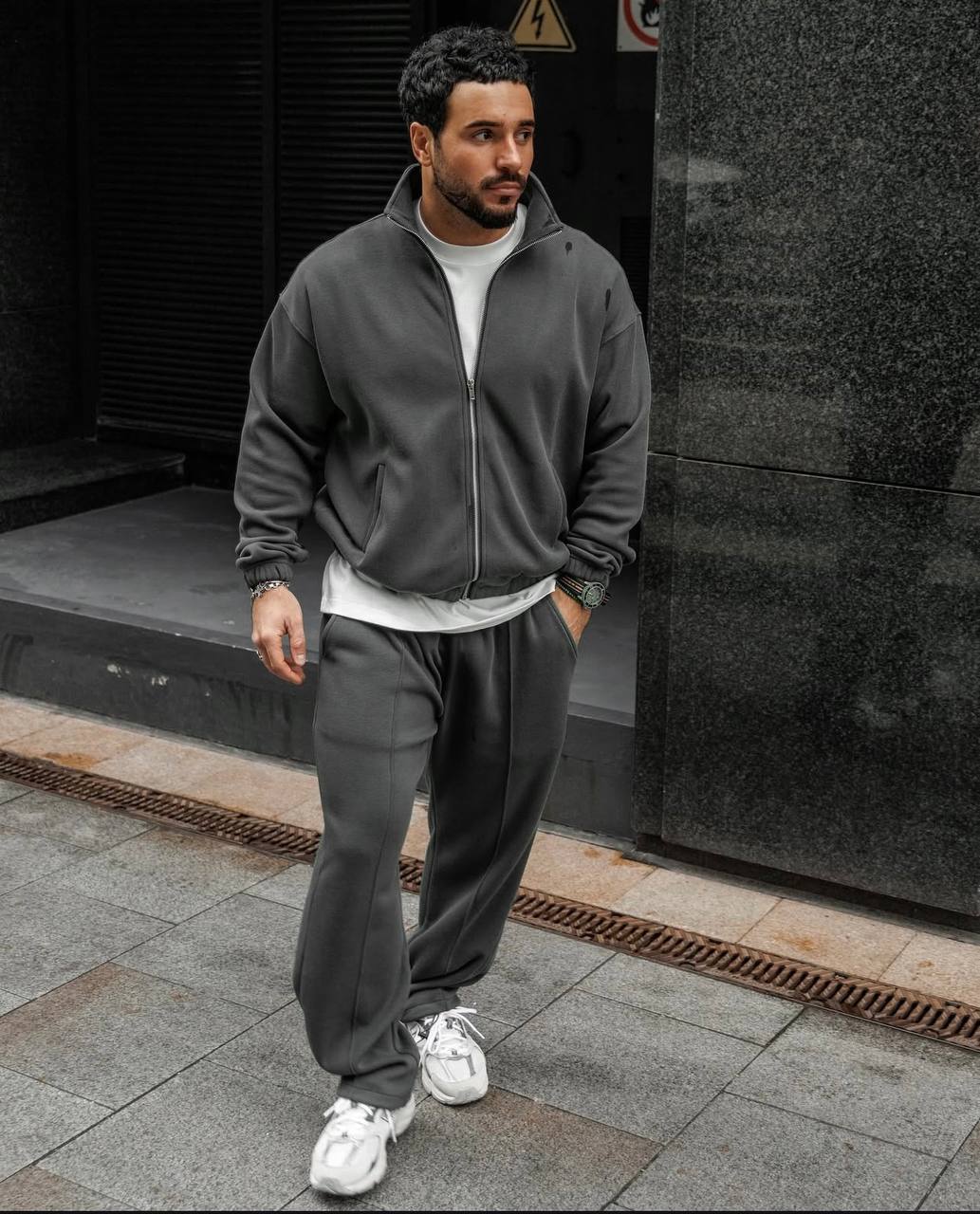 Костюм из теплой ткани, приятен к телу. Идиален для сезона осень-зима. Брюки снизу идут на фиксаторах, можно регулировать.