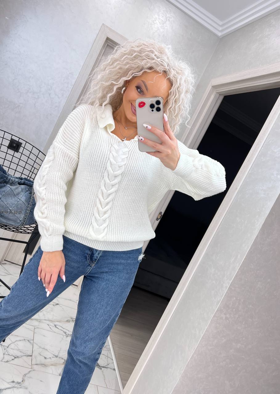 Мягкая эластичная объемная кофточка с отложенным воротником молочный