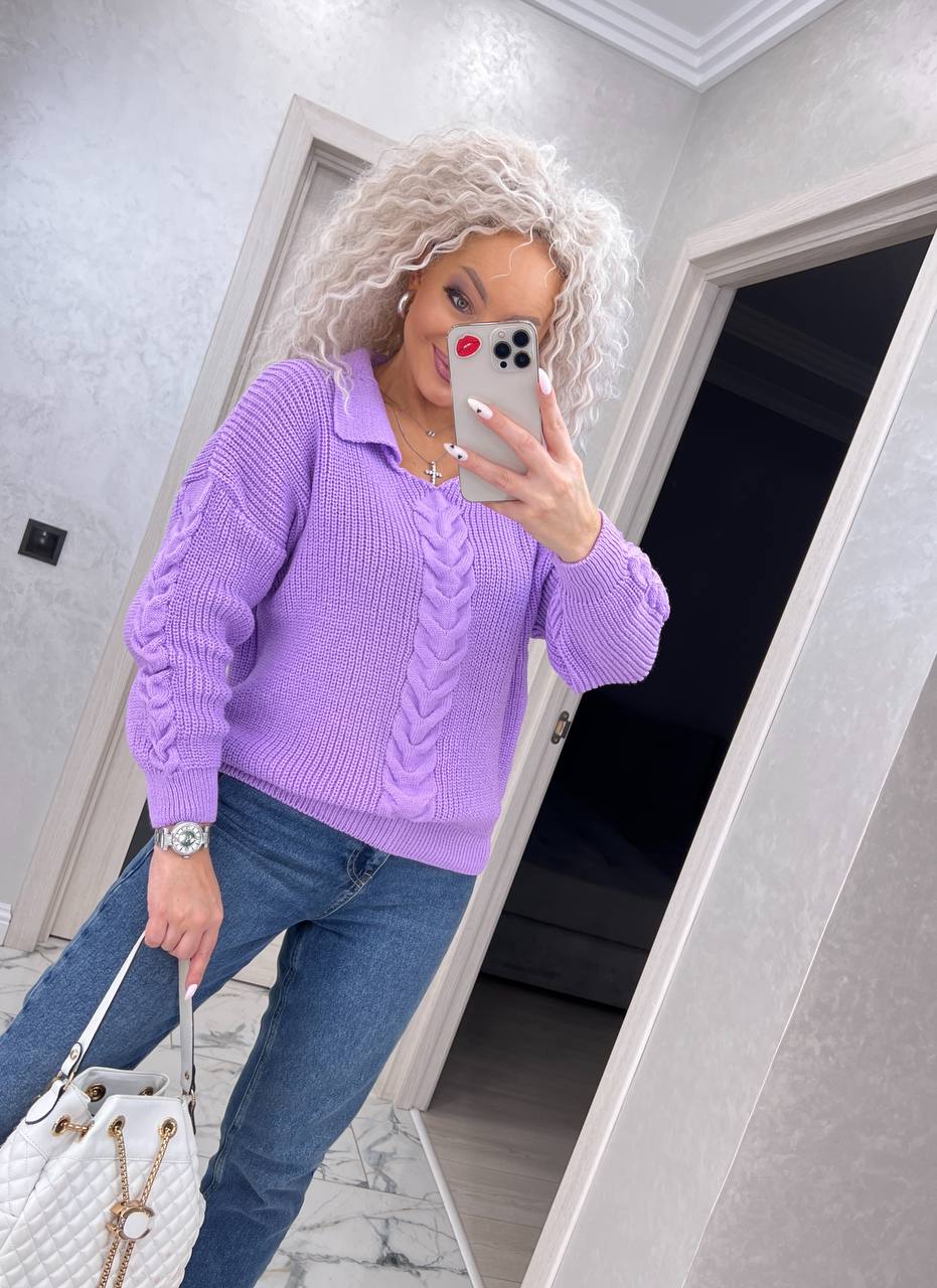 Будьте першим, хто залишив відгук “Мягкая эластичная объемная кофточка с отложенным воротником сирень”“