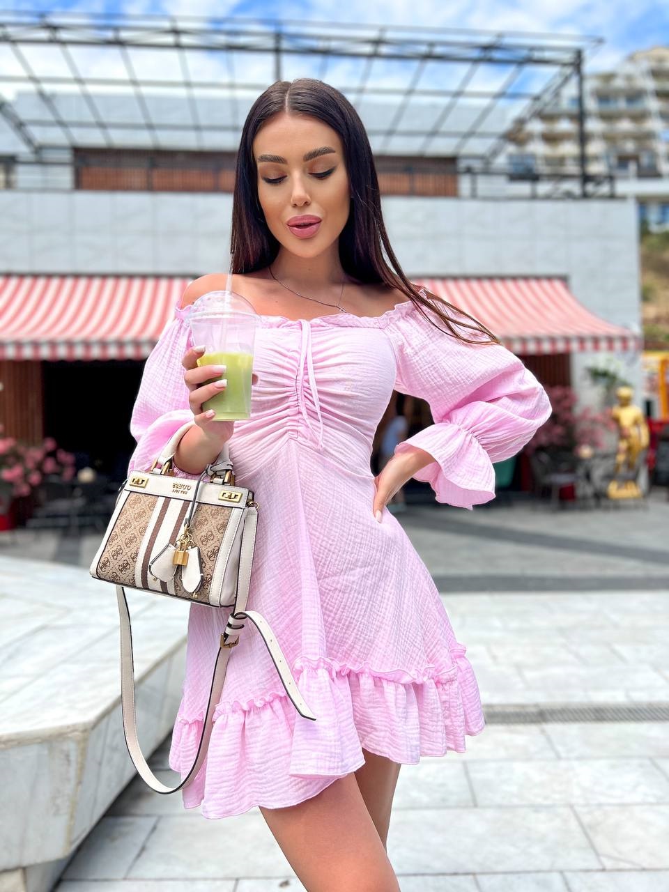 Будьте першим, хто залишив відгук “Невероятно нежное и легкое короткое платье с длинным рукавом розовый”“