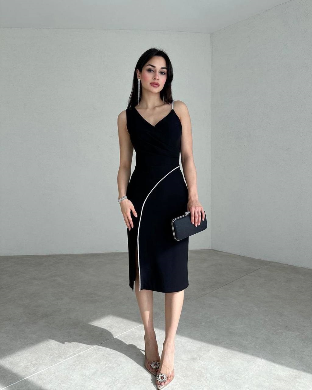 красиво подчеркивает фигуру, бретелька и полоска на платье сделана из блестящих камней, изысканность и нежность в одном сочетании ❤️