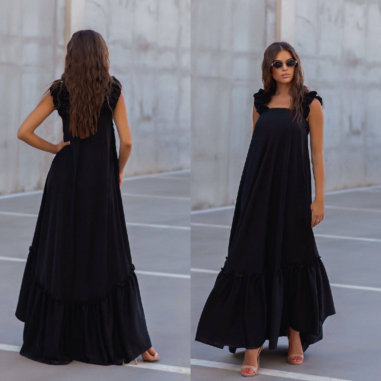 Невероятный длинный сарафан жатый шелк черный