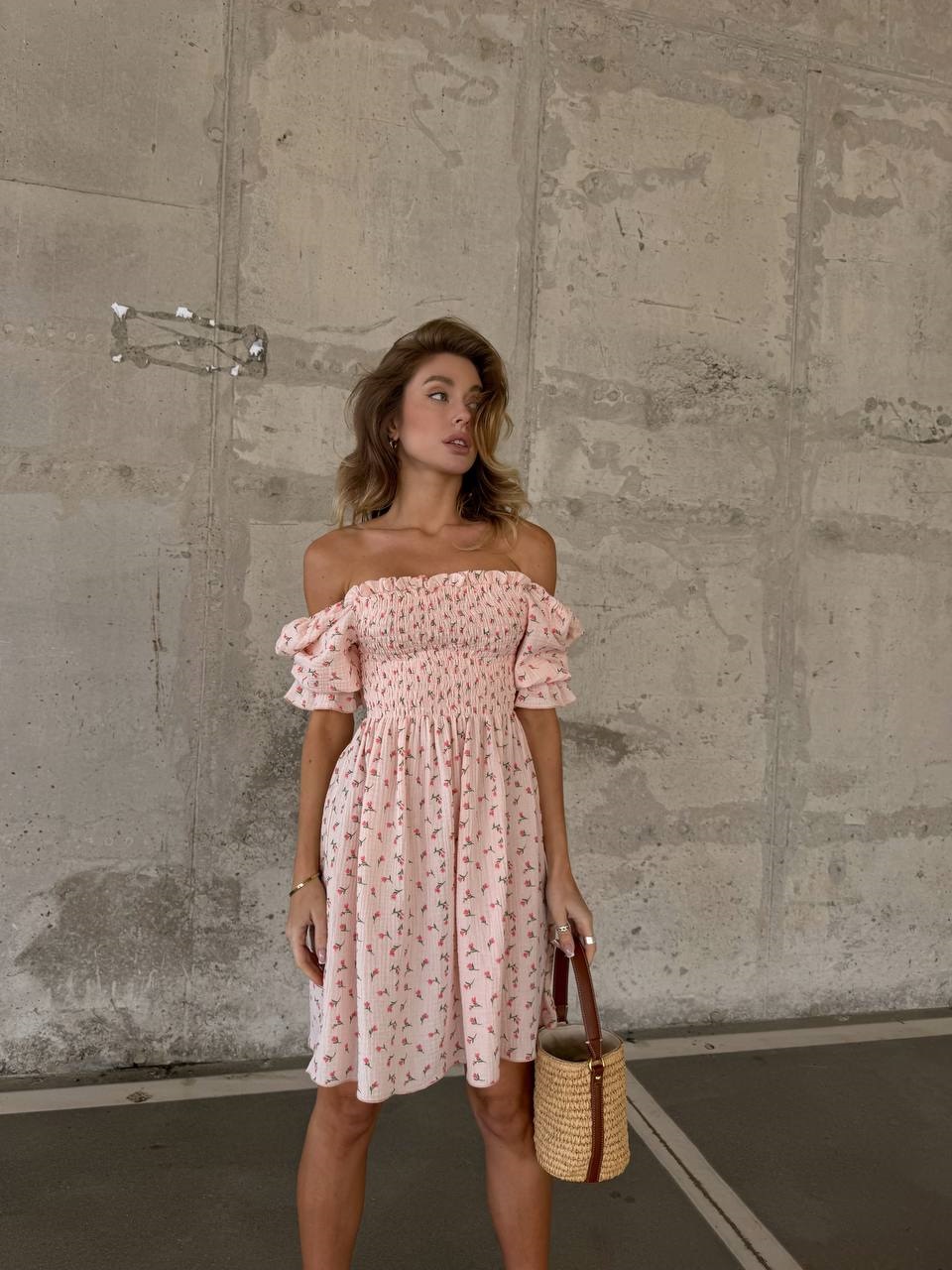 Невесомое платье из качественного муслина по полочке настрочена резинка розовый с розовым