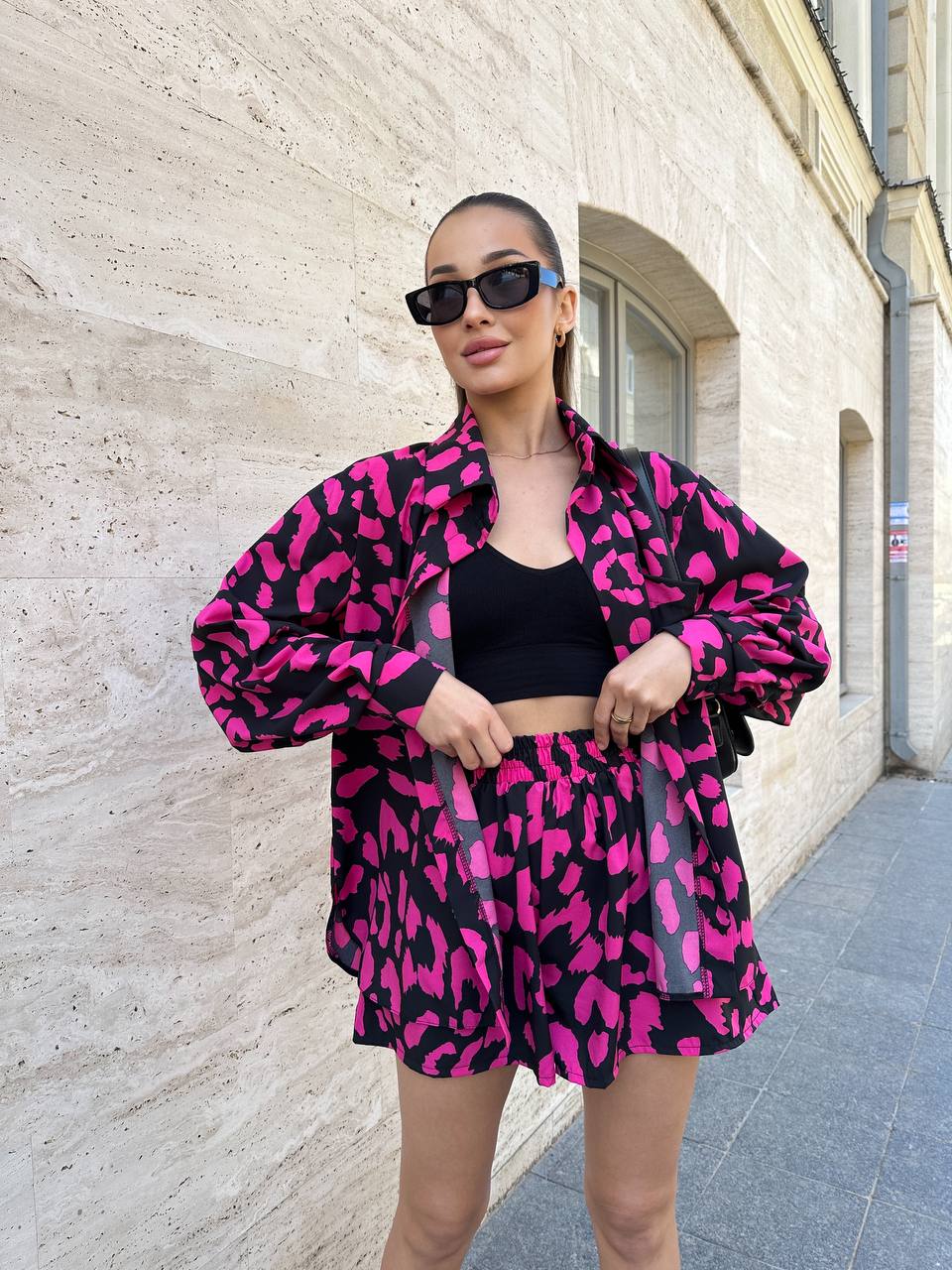 Невесомый воздушный и универсальный костюм рубашка с объемными рукавами и шорты розовый