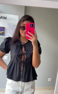 Головна » Магазин » Одяг » Верхнє тіло тіла » Нежная блуза на завязочках+пышными рукавами черный