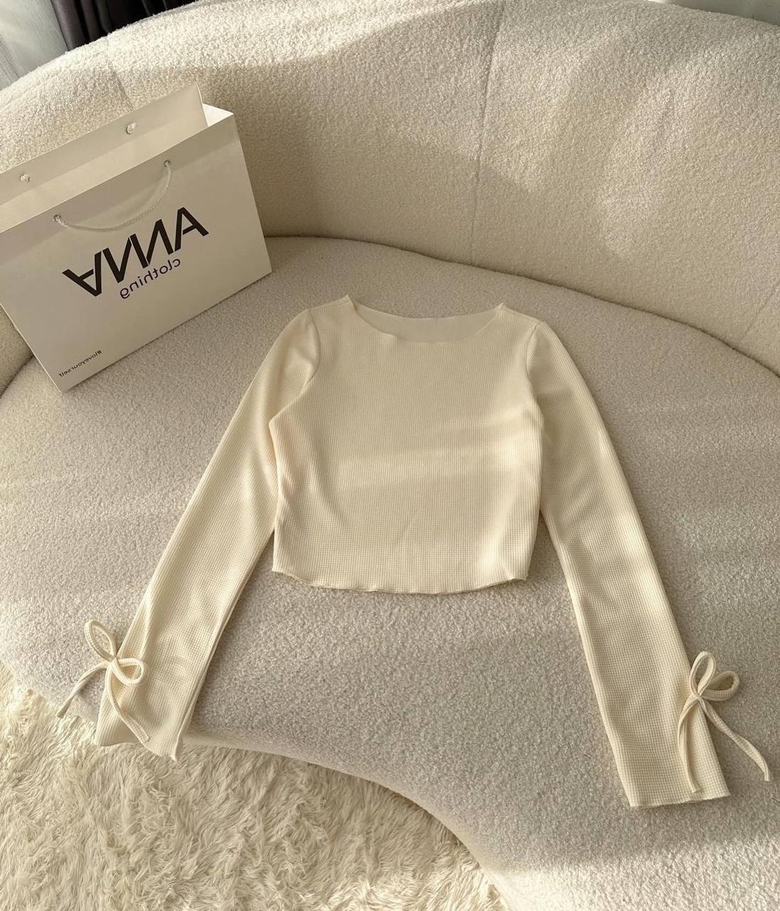 Нежная трикотажная кофточка с длинным рукавом молочный