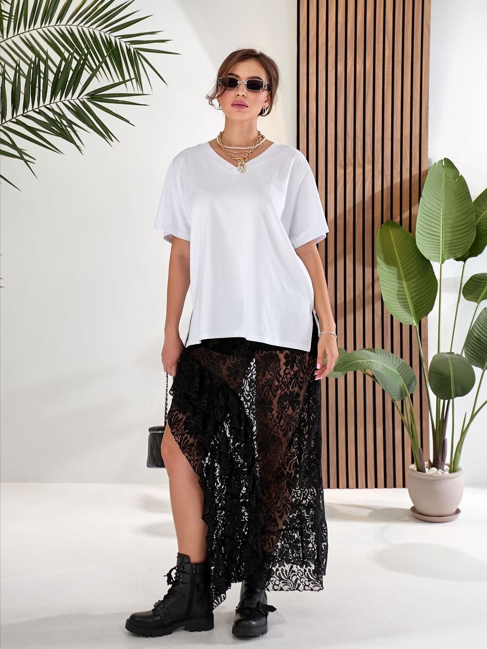 Нежная воздушная юбка из гипюра с эластичными шортами чорний