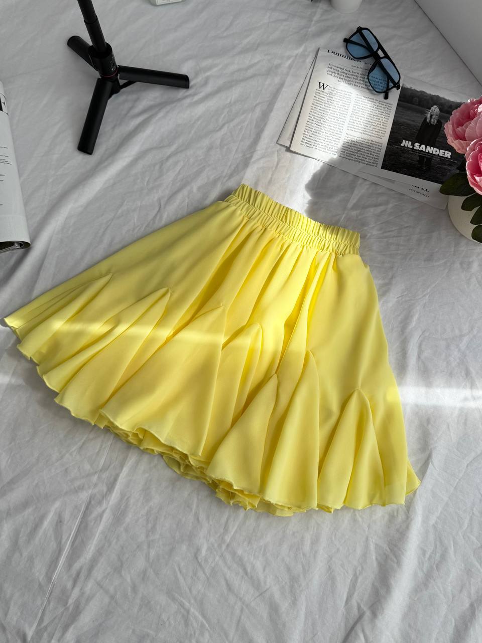 Нежная воздушная юбка креп шивон лимонный