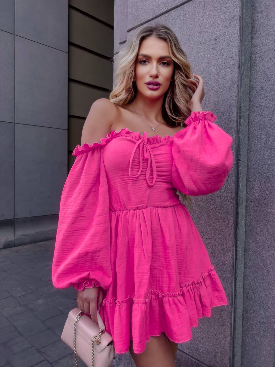 Нежное и романтичное платье с длинным рукавом фонарик на резинке малина