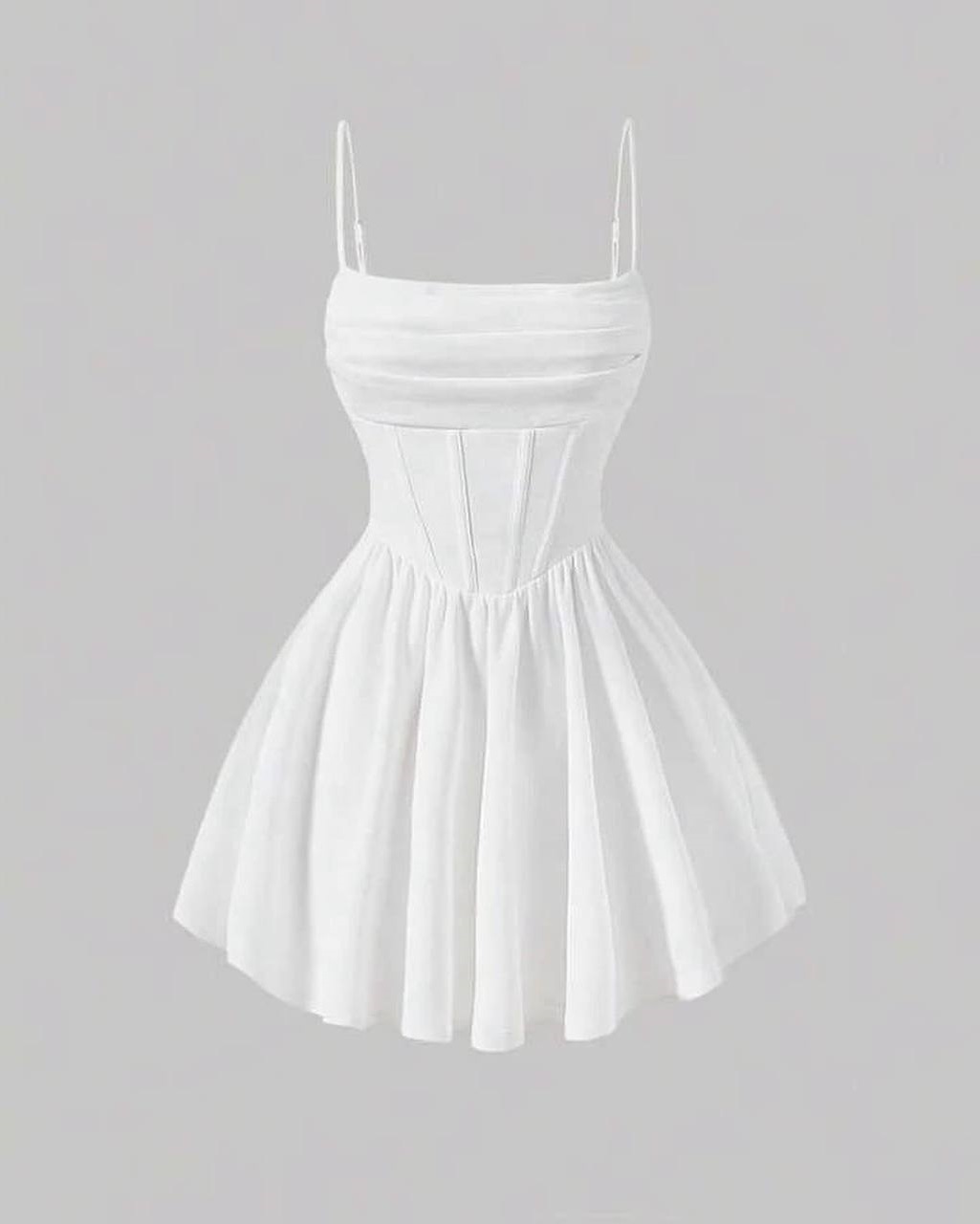 Нежное мини платье на бретелях с расклешенной юбкой молочный