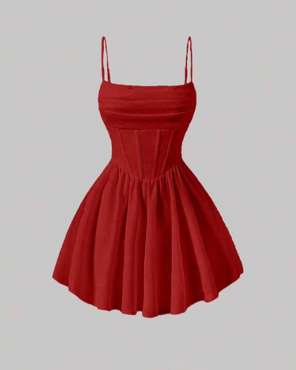 Нежное мини платье на бретелях с расклешенной юбкой красный