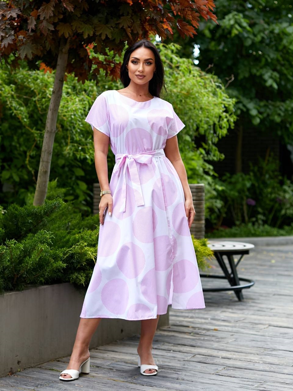Нежное платье идеальный крой длиной миди коттон белый+розовый