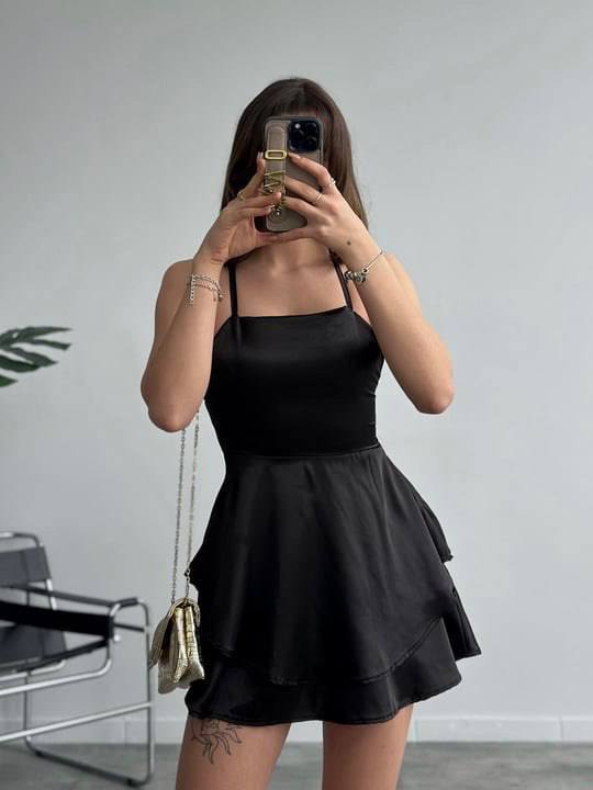 Легкая невесомая ткань очень красиво садится по фигуре, на спине регулируется завязками. Имеет шортики, благодаря чему в ней будет максимально удобно и комфортно.
