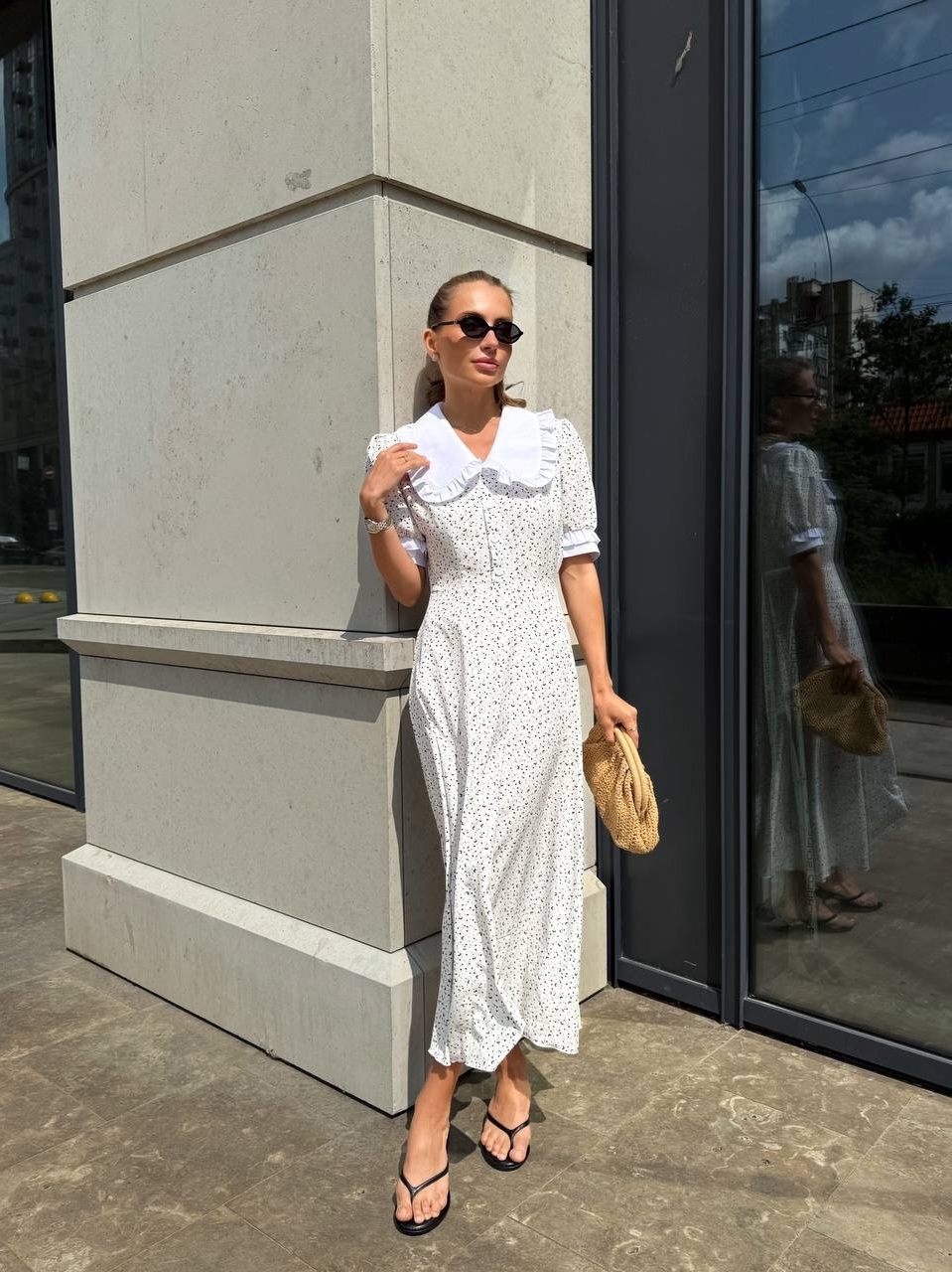 Головна » Магазин » Одяг » Сукня туніка сарафані » Нежное платье приталенного силуэта с белым воротничком белый