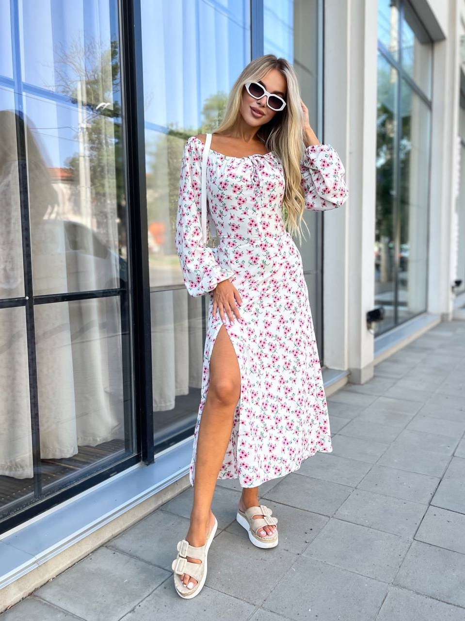 Головна » Магазин » Одяг » Сукня туніка сарафані » Нежное платье с роскошным разрезом белый с розовым принтом
