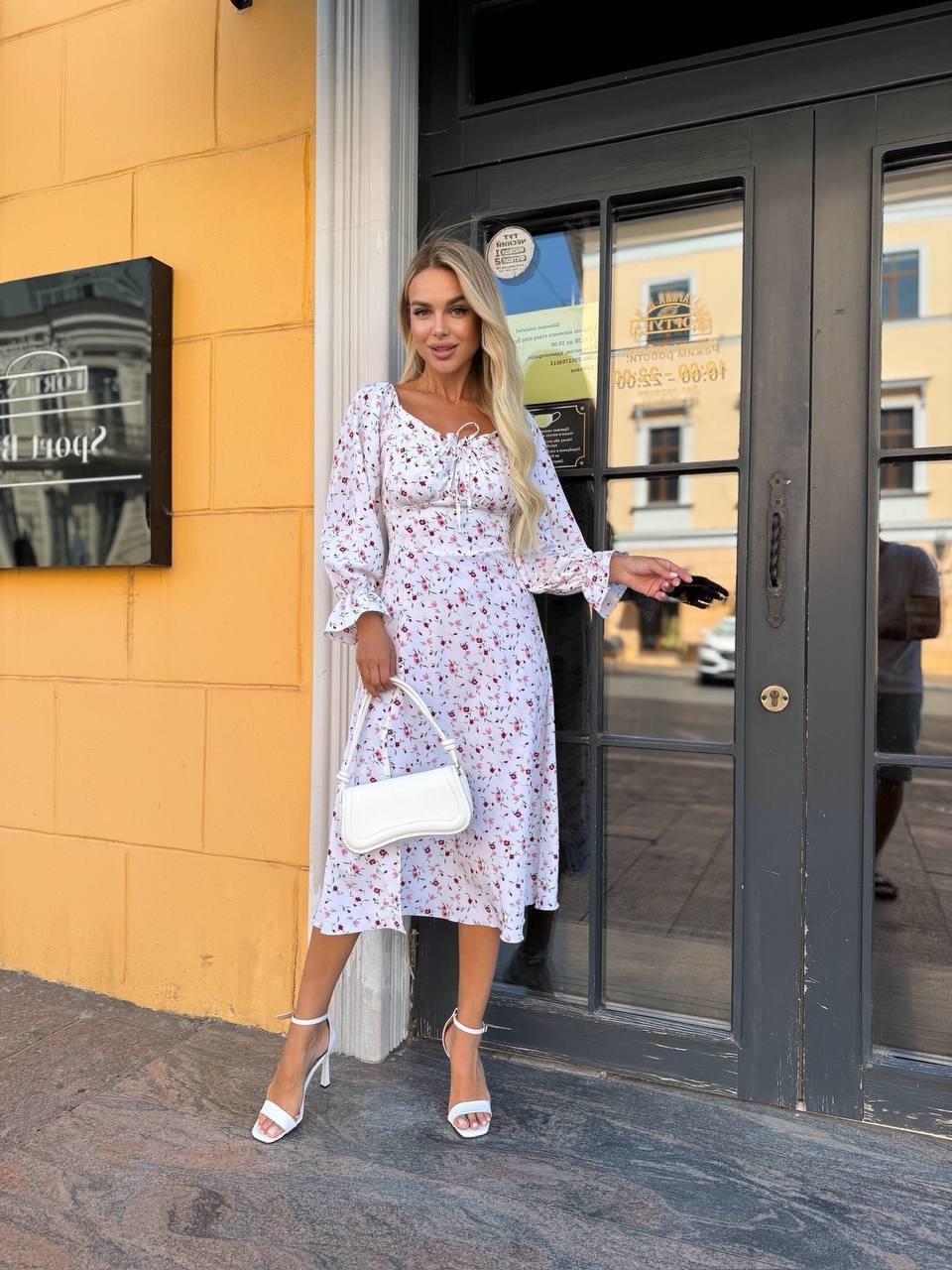 Головна » Магазин » Одяг » Сукня туніка сарафані » Нежное Платье в цветочный принт приталенного силуэта белый