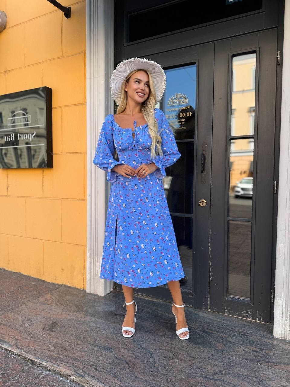 Головна » Магазин » Одяг » Сукня туніка сарафані » Нежное Платье в цветочный принт приталенного силуэта голубой
