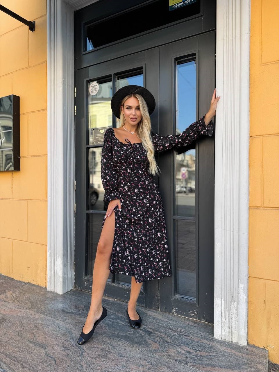 Головна » Магазин » Одяг » Сукня туніка сарафані » Нежное Платье в цветочный принт приталенного силуэта принт мелкие розовые цветочки черный
