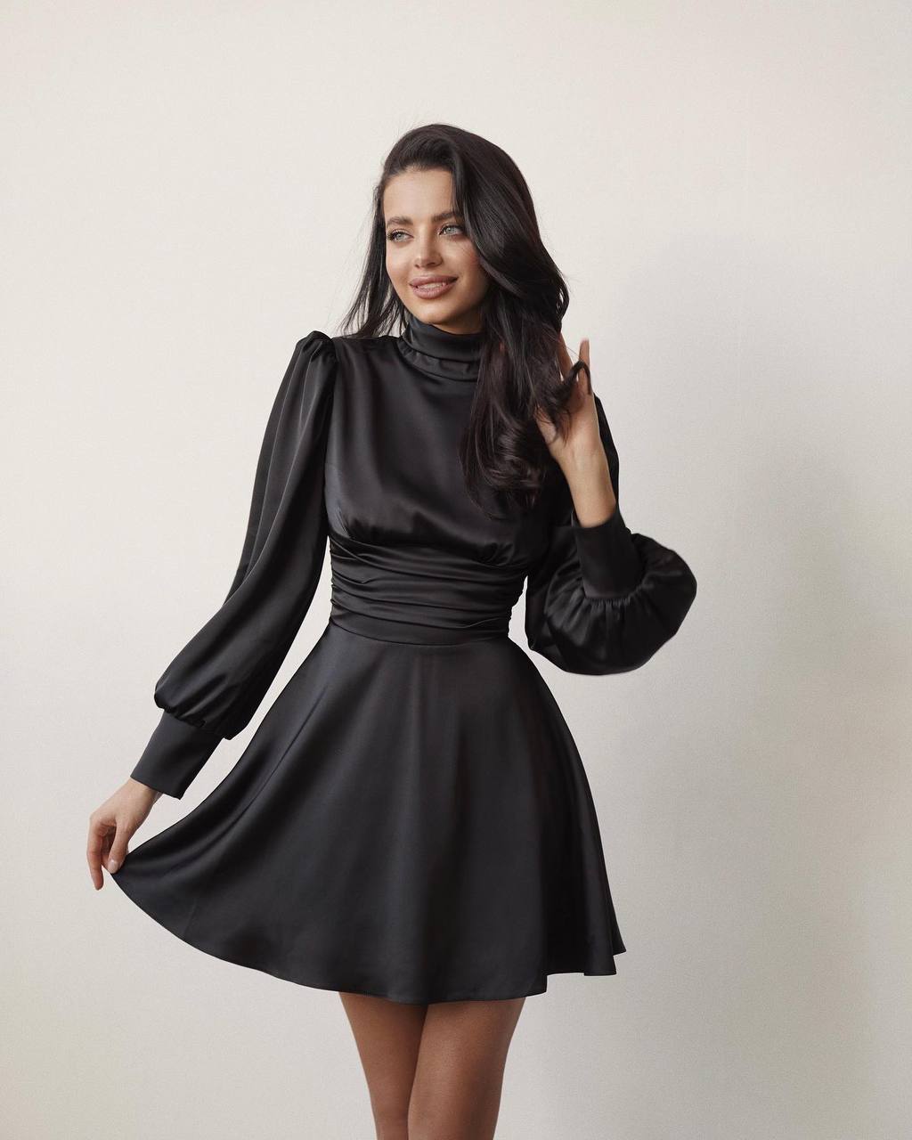 Воздушные рукава, драпировка на талии и открытая спинка – что может быть очаровательнее?)