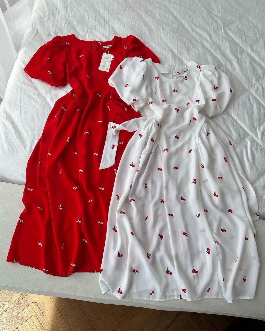 Головна » Магазин » Одяг » Сукня туніка сарафані » Нежное шелковистое платье с пышными рукавчиками принт вишеньки белый