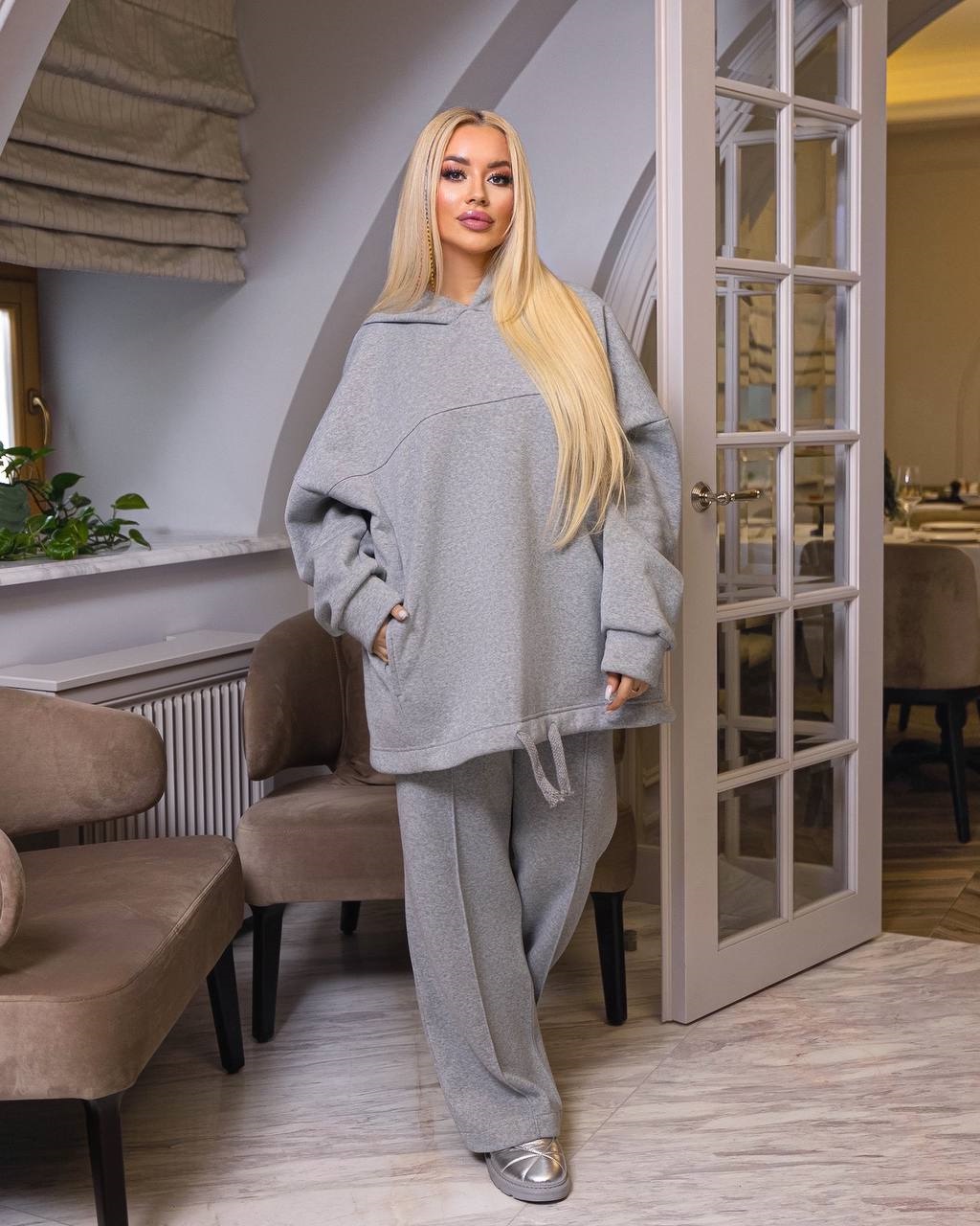 Худи фасоны оверсайз удлиненной длины с объемным капюшоном. Его можно легко совмещать с гардеробом. Джинсы, леггинсы, спортивные брюки или брюки.