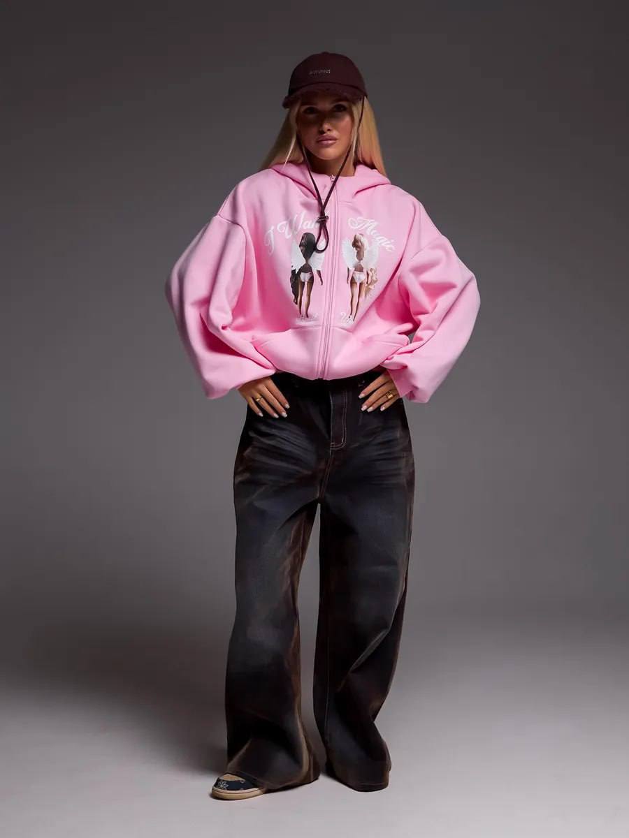 Оversize худи на молнии с карманами (трехнитка на флисе) барби